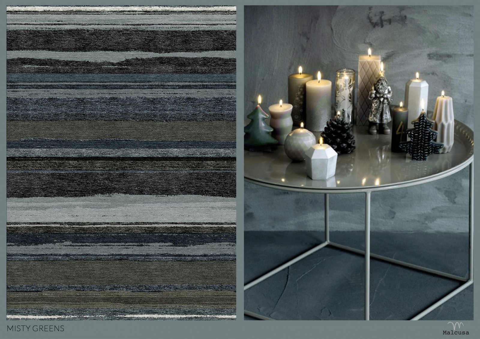MISTY GREENS una tavolozza elementare di grigi freddi, taupes e verdi.
