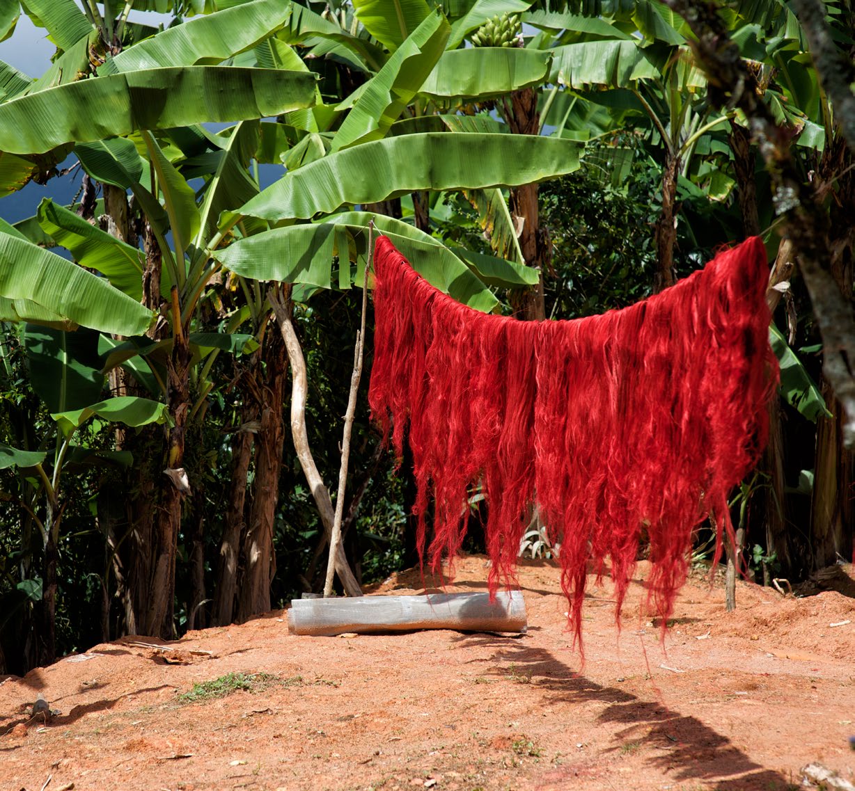 Le fibre del Fique una volta spazzolate, tinte e filate, vengono avvolte in coni, pronte per la trasformazione finale. Su telai manuali, i fili colorati sono poi tessuti ed intrecciati con i metalli, come rame e stagno. Il risultato è semplicemente incredibile.